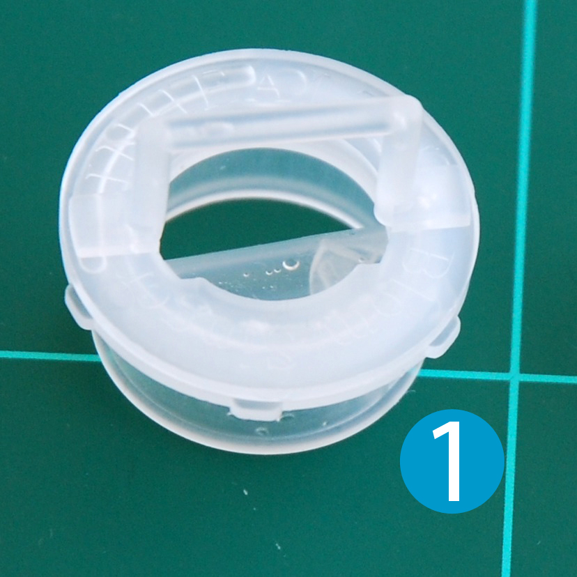 Der HumidiFilter + Cap ist nur zur Benutzung als HME-Aufsatz für das Tracheostomaventil ATSV II (1) vorgesehen. Er besteht aus einer Kappe (Cap) (2) die auf das Tracheostomaventil gesteckt und durch eine Drehung darauf verriegelt (5) wird. Sie fixiert den Schaumstoffilter (3) (HumidiFilter Cap Foam Filters) der gesondert erhältlich ist. Die Schaumstoffilter sind nur in einer Strömungswiderstandsstärke erhältlich. Er ist auf beiden Seiten eingeschnitten (4)und wird um den Bügel des ATSV II gelegt.